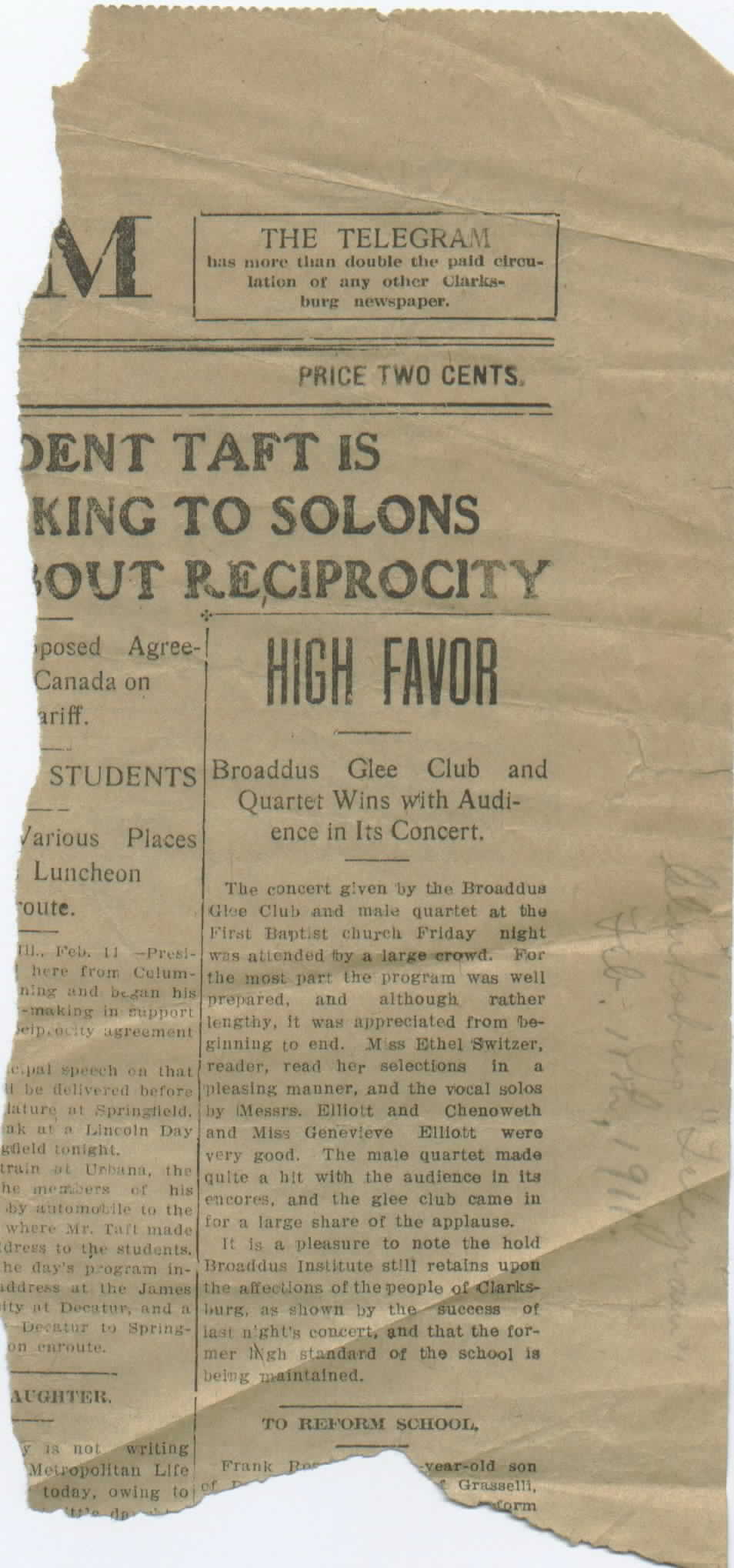 on February 11th, 1911, for a performance of Broaddus Glee Club